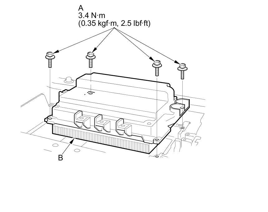 3. Remove the bolts (B, C) and the phase motor current sensor (D).