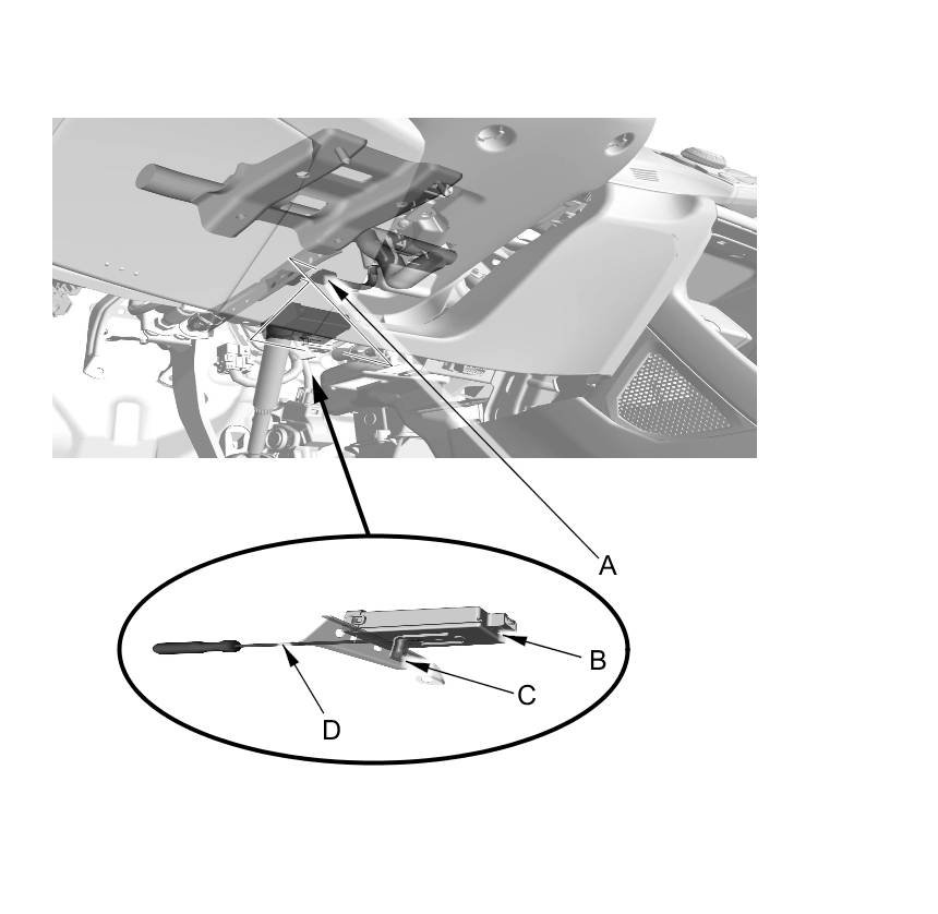 NOTE: While separating the TPMS control unit from the bracket, use a flat-tipped screwdriver (D) to push and release it from the bracket.
