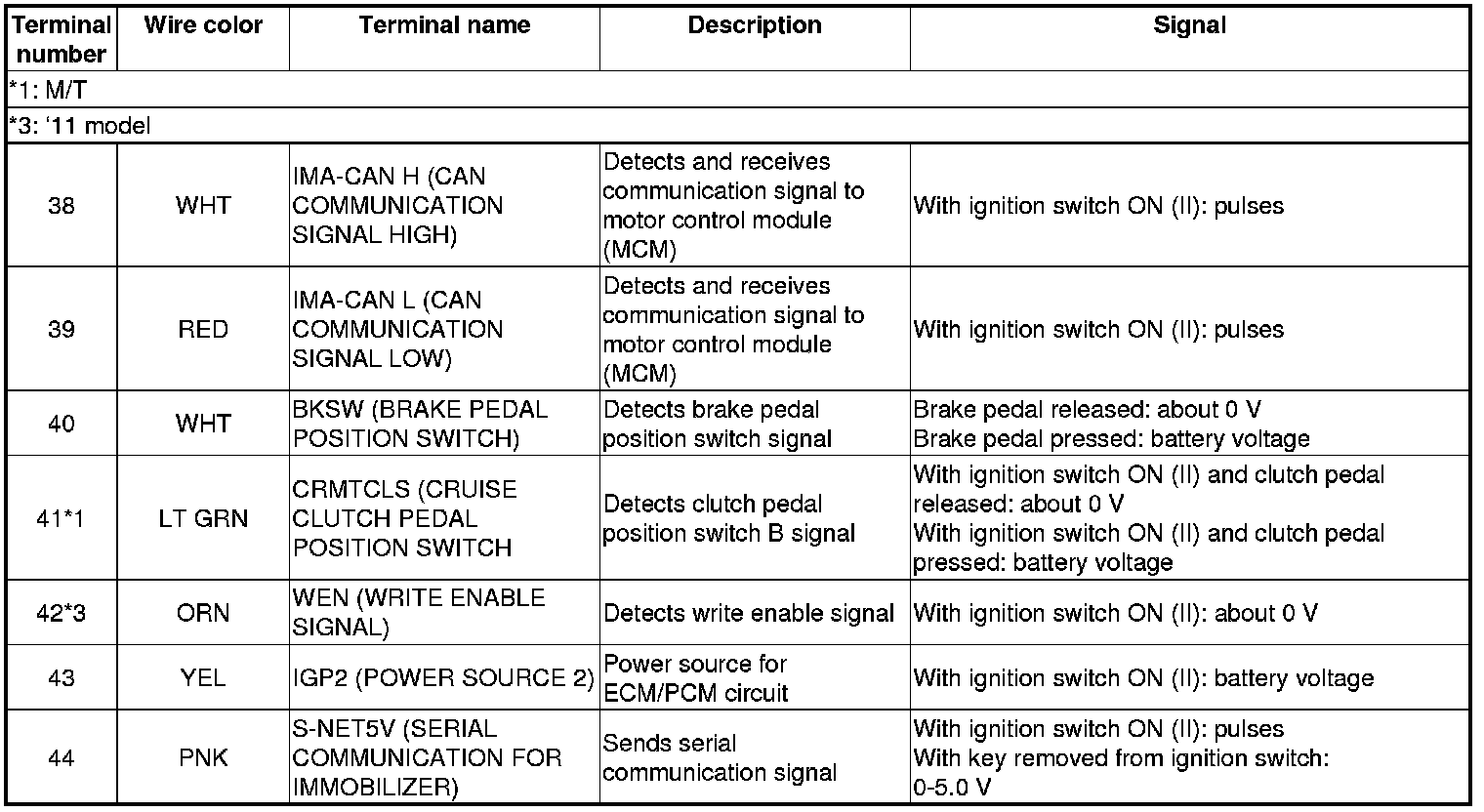 ECM/PCM Inputs and Outputs at ECM/PCM Connector A (square) (44P)