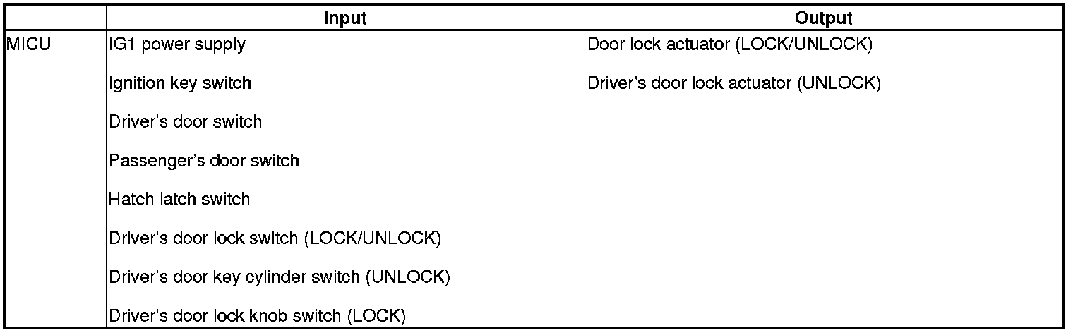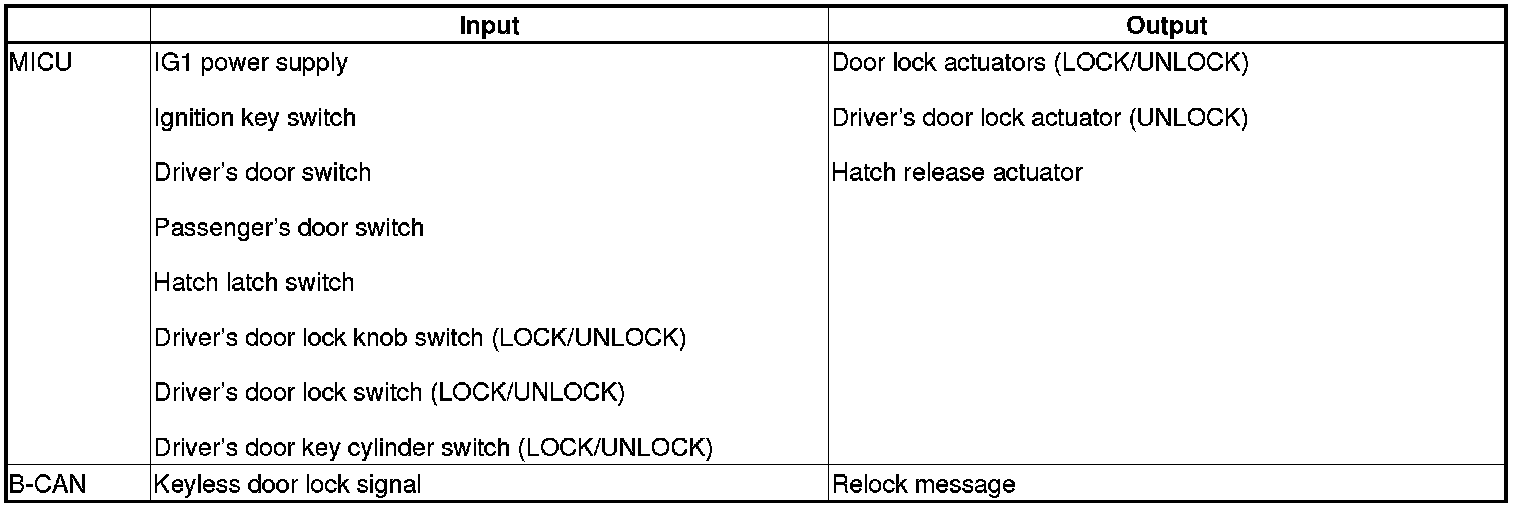 The MICU controls the door lock actuators based on inputs from each switch and B-CAN signals.