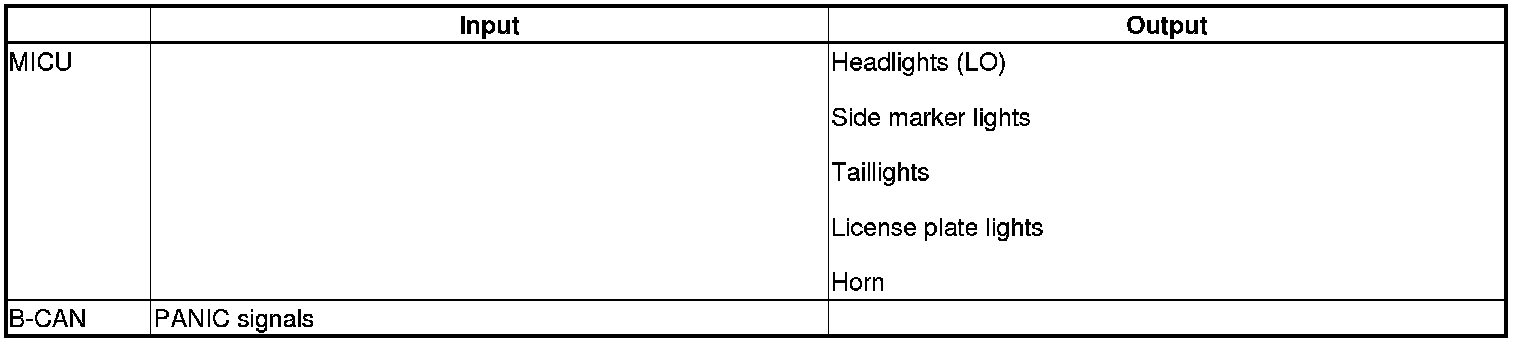 The MICU controls the keyless PANIC function based on PANIC signals sent by B-CAN.