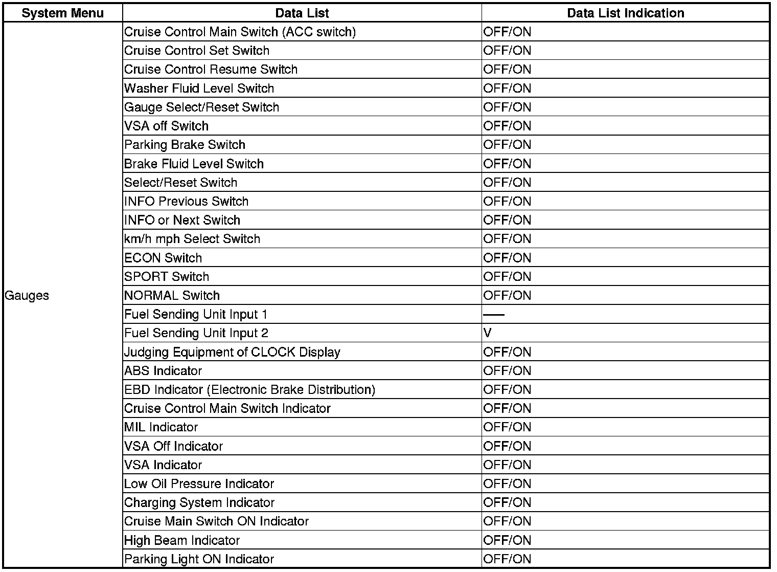 The ECUs on the CAN circuit send messages to each other. If there are any communication malfunctions on the network, the multi-information display (MID) on the gauge control module can indicate the error messages by entering the gauge control module self-diagnostic function Testing and Inspection.