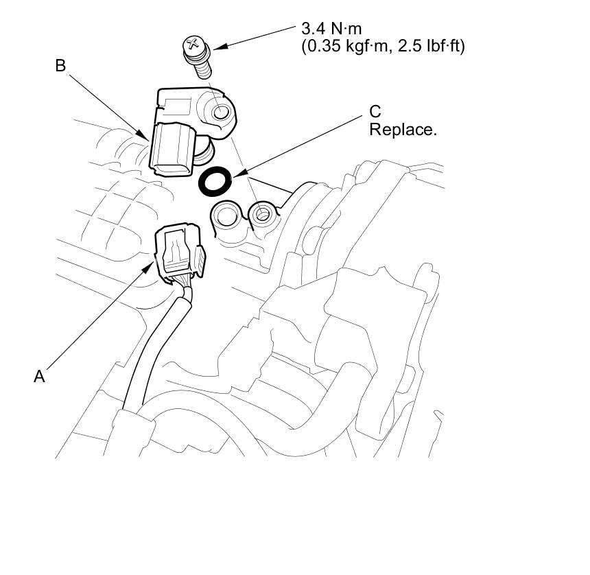 Install the parts in the reverse order of removal with a new O-ring (C).