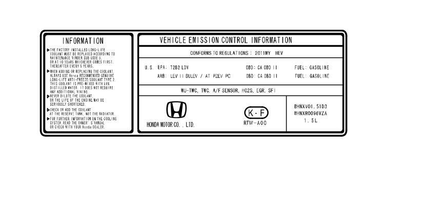 CONFORMS TO REGULATIONS: 2011 MY HEV