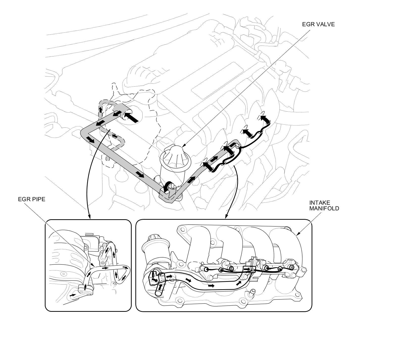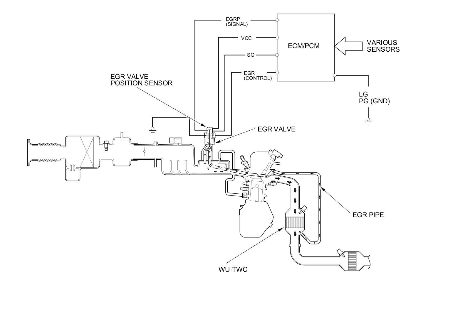 The EGR system reduces oxides of nitrogen (NOx) emissions by recirculating exhaust gas through the EGR pipe and the intake manifold, and into the combustion chambers. Routing the exhaust gas through the EGR pipe helps to prevent carbon deposits from forming in the intake manifold and the throttle body. The ECM/PCM memory contains the ideal EGR valve positions for various operating conditions.