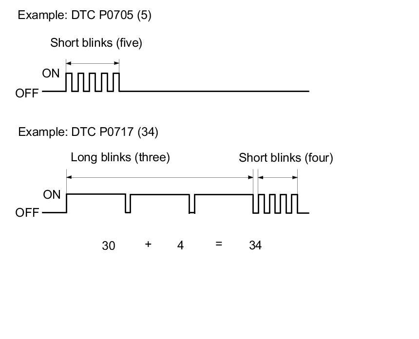 When an abnormality occurs in the signal from a sensor, a switch, a solenoid valve, or another control unit, the PCM stores a Pending or Confirmed DTC for the failure and blinks the D indicator and/or turns on the MIL immediately.