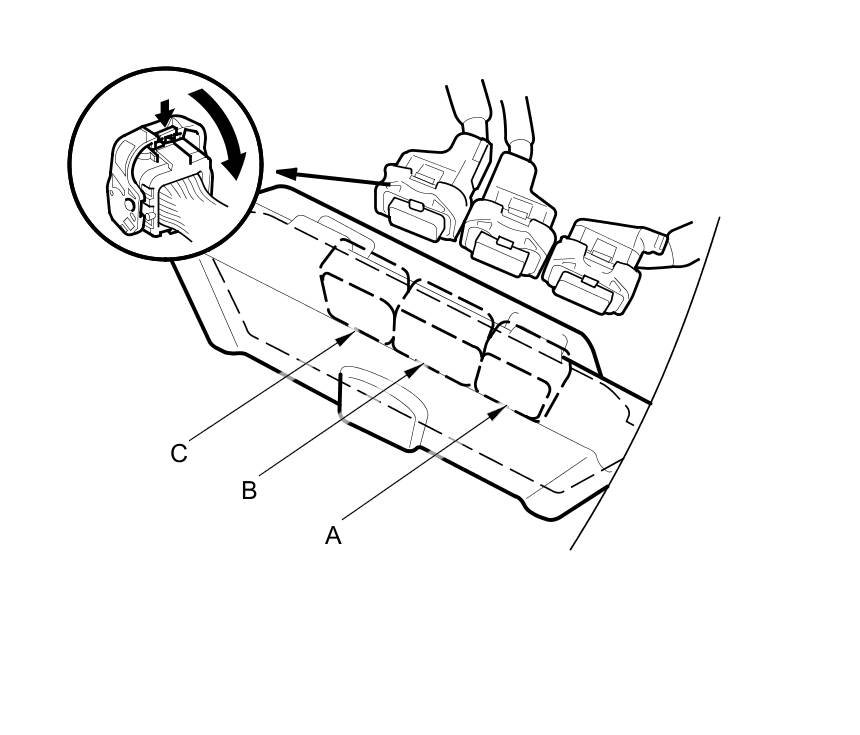 2. Disconnect PCM connectors A, B, and C.