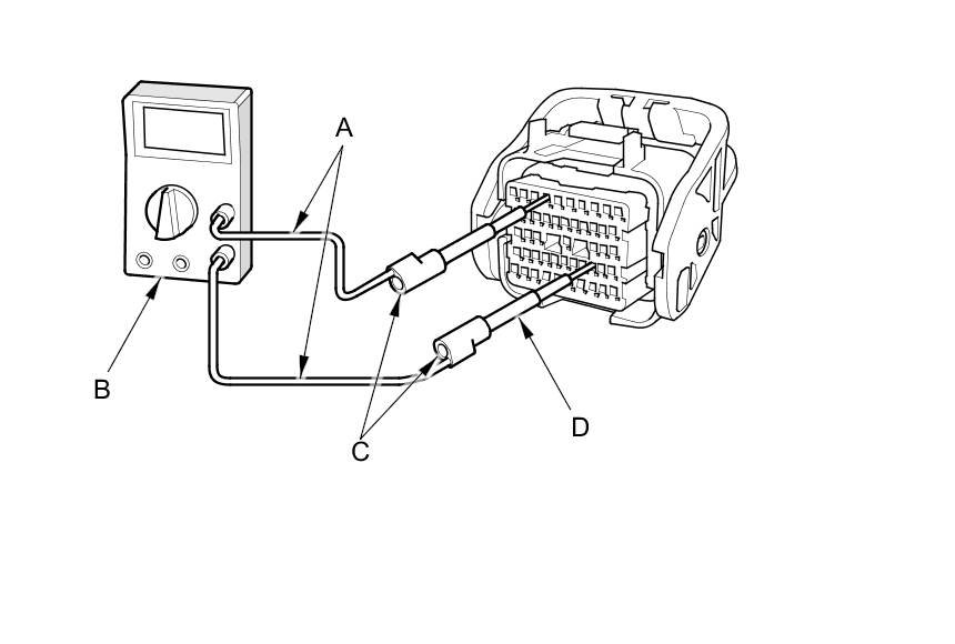 - To prevent damage to the connector terminals, do not insert test equipment probes, paper clips, or other substitutes as they can damage the terminals. Damaged terminals cause a poor connection and an incorrect measurement.