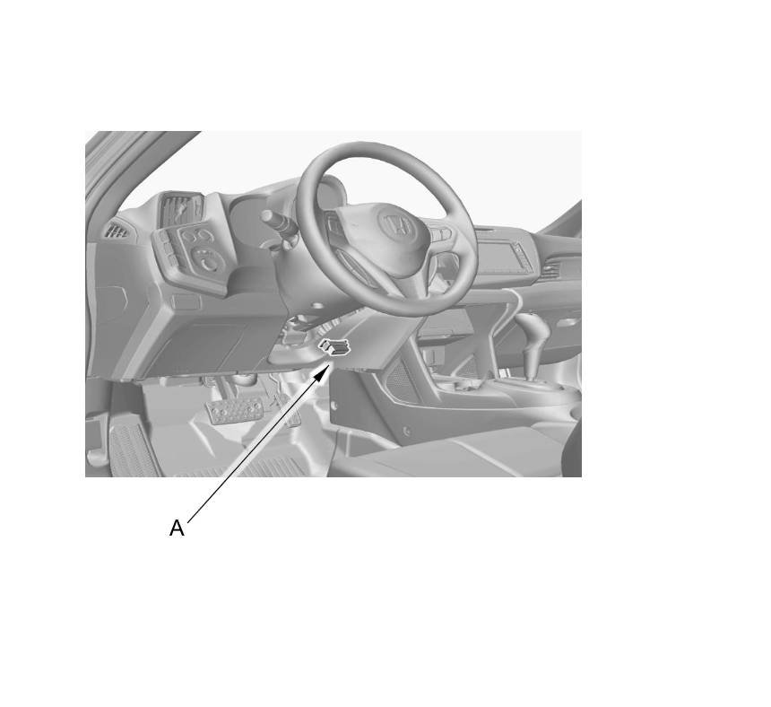 When the Honda Diagnostic System (HDS) is connected to the data link connector (DLC) (A) located under the driver's side of the dashboard and the SCS mode is selected, it will indicate the diagnostic trouble code (DTC) when the ignition switch is turned to ON (II) and the appropriate menu is selected.