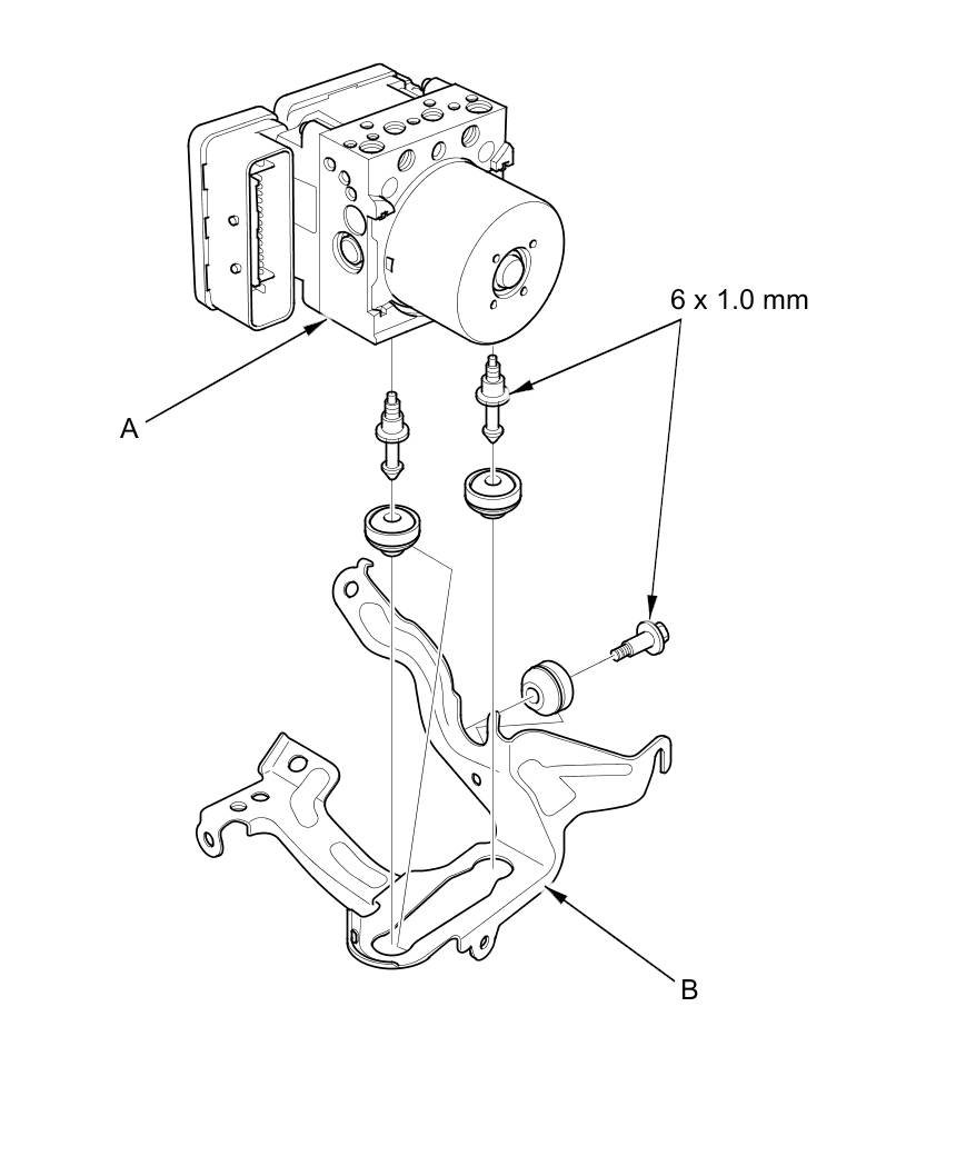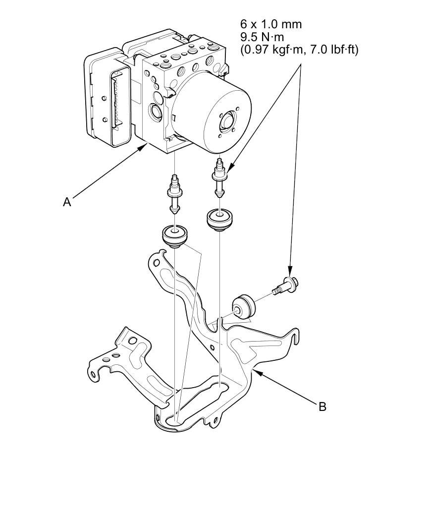 1. Install the VSA modulator-control unit (A) onto the bracket (B).