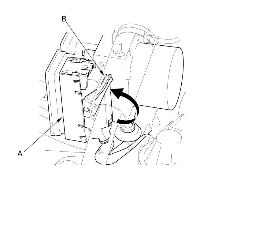 4. Remove the VSA modulator-control unit (A) with the bracket (B) from the body.