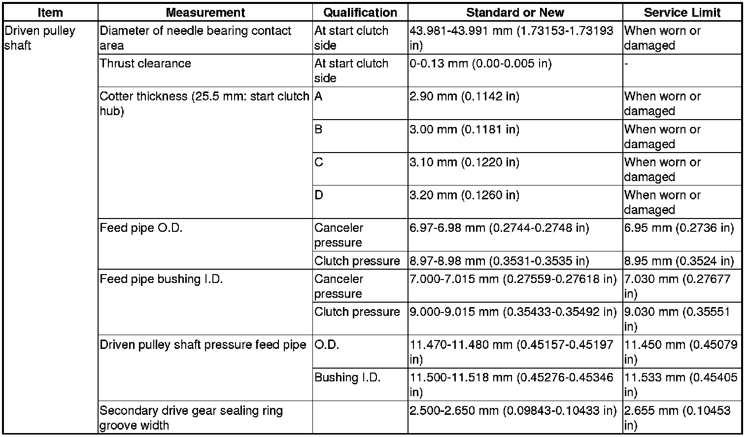 Driven Pulley Shaft Specifications (CVT)
