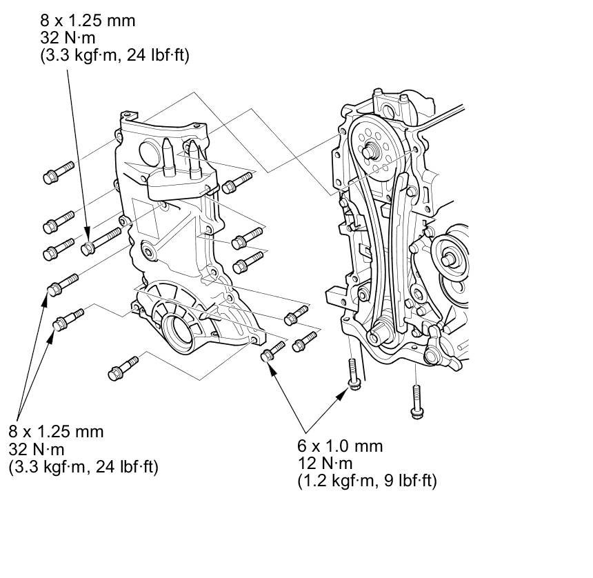 Tighten the chain case mounting bolts. Wipe off the excess liquid gasket from the