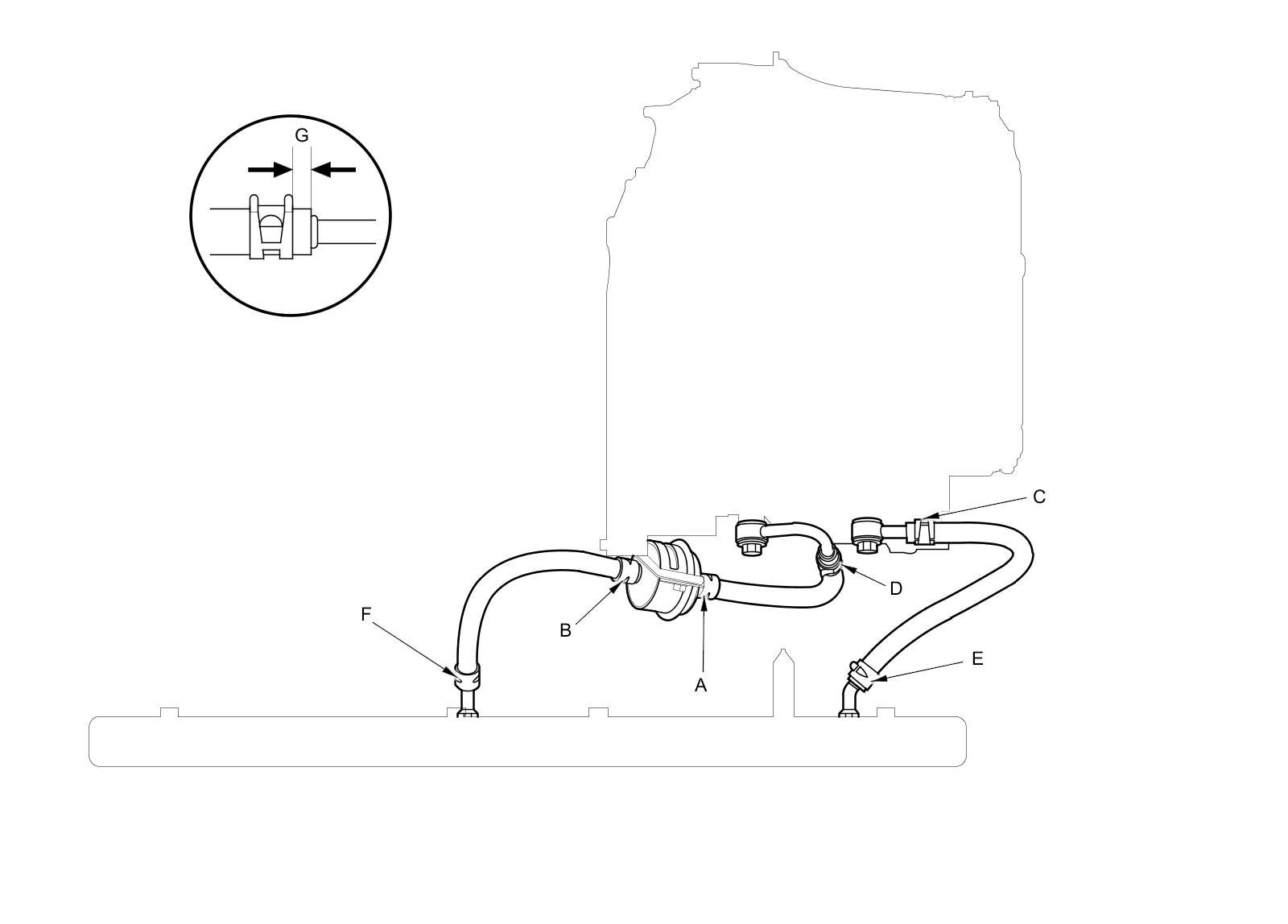 NOTE: When installing the hose clamps, make sure they do not interfere with the surrounding parts.