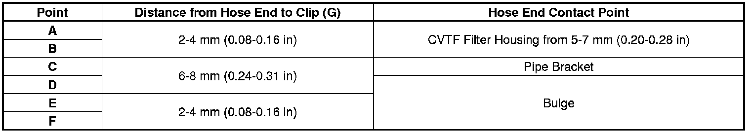 1. Install the CVTF cooler hoses over the CVTF cooler lines with the clips at appropriate points in reference to the following list.