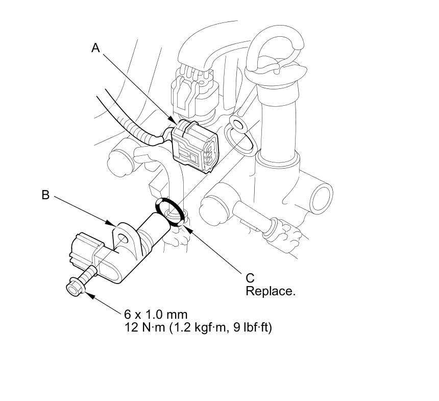 3. Install a new O-ring (C) on a new CVT input shaft (drive pulley) speed sensor, then install the CVT input shaft (drive pulley) speed sensor in the transmission housing.