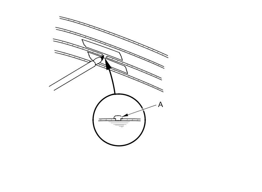3. Using a commercially available rear window defogger repair kit, apply a heavy coat of paint (A) extending about 1/8'' on both sides of the break. Allow 30 minutes to dry.