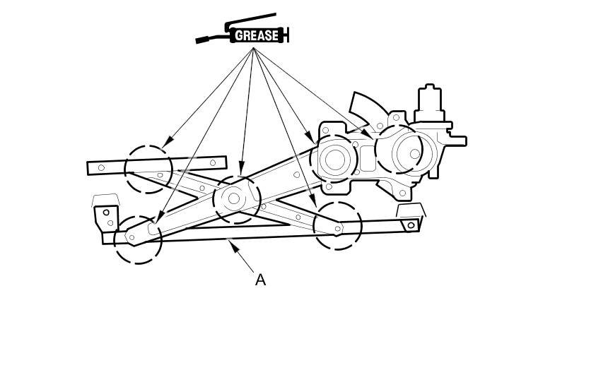 7. Apply multipurpose grease to all the sliding surfaces of the regulator (A) where shown.