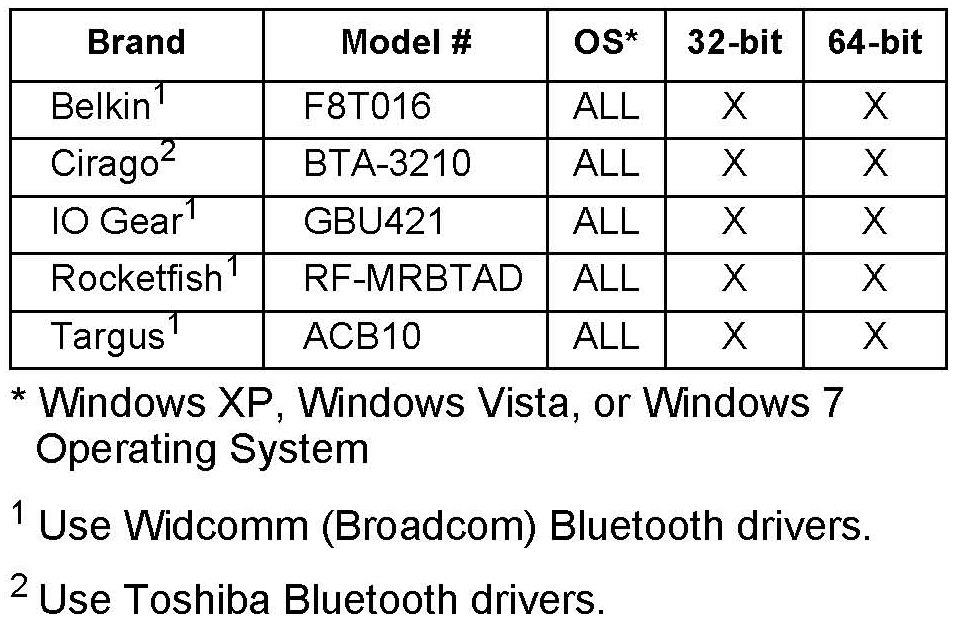 ^ A recognized Bluetooth radio device installed on this computer. It one is required, order P/N: CDWF8T016 from the Tool and Equipment Program (on iN, click on: Service > Quick Links > Tool and Equipment Program), or choose a commercially available device from the list below.