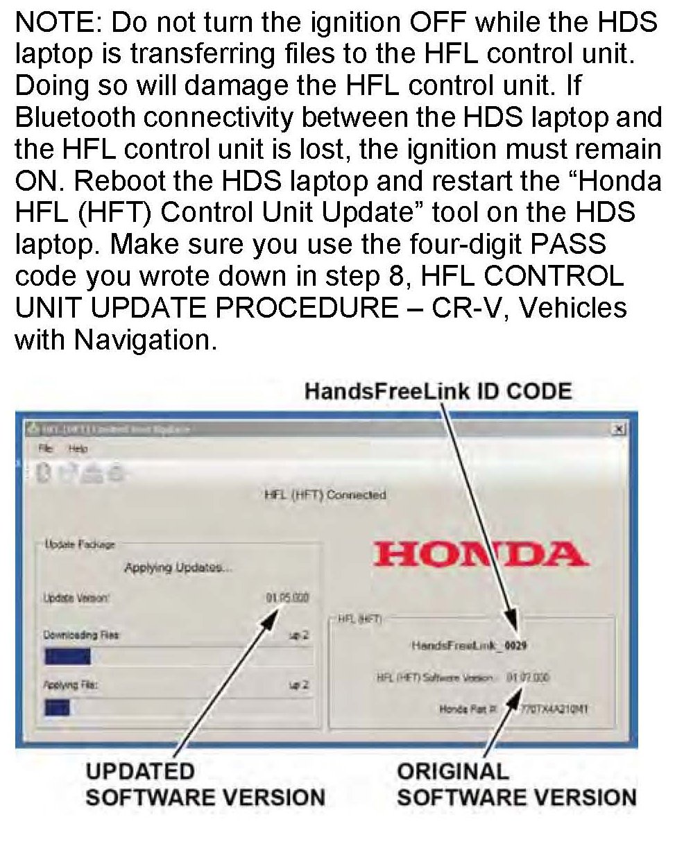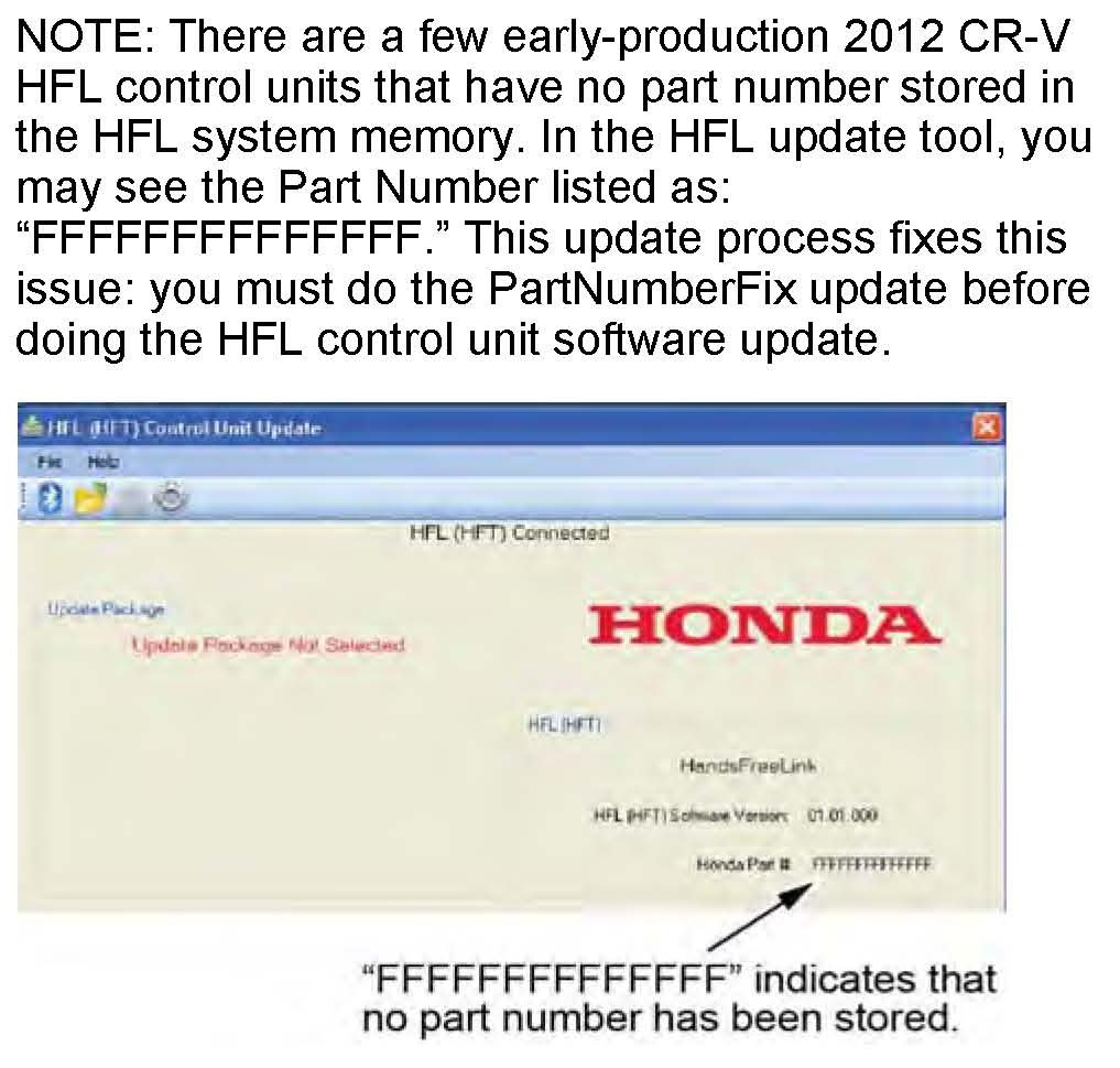 ^ If a valid Part Number is displayed, the PartNumberFix update is complete. You must now update the HFL control unit software. Go to HFL CONTROL UNIT UPDATE PROCEDURE - CR-V, Vehicles with Navigation.