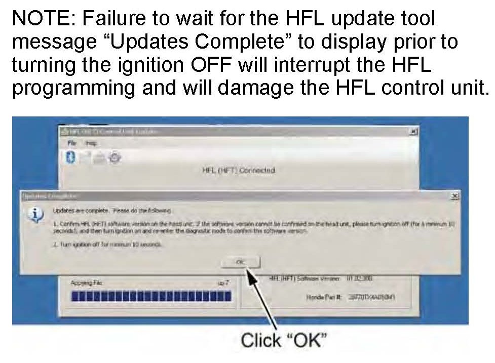 4. In the HFL update tool, click OK when the pop-up window indicates the update is complete.