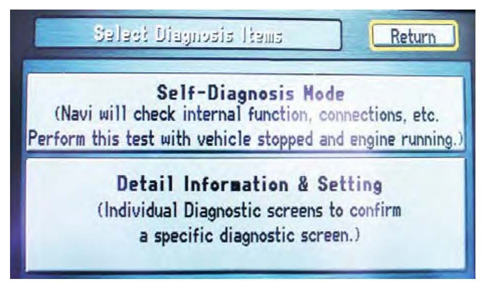 8. Wait for the navigation system to boot up. When the disclaimer screen appears, press and hold the MAP/GUIDE, the DEST, and the CANCEL buttons for at least 5 seconds until the Select Diagnosis Items screen appears.