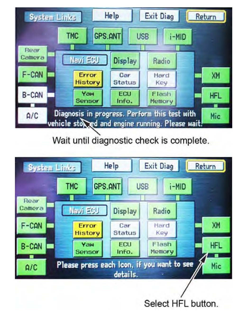 10. The System Link screen appears and does an automatic diagnostic check. Wait a few moments while the process completes. Once completed, select the "HFL" icon.
