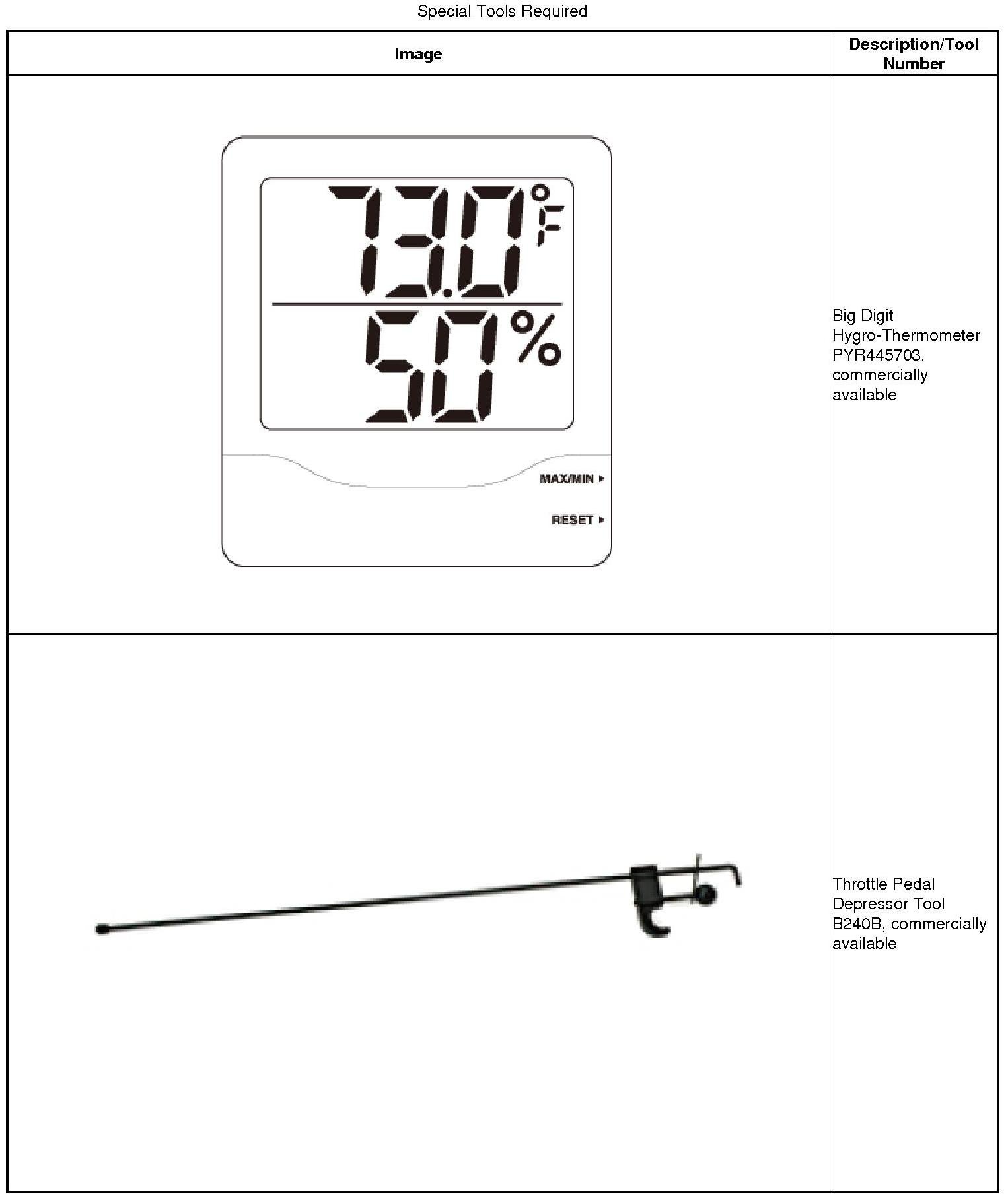 5. After running the air conditioning for 10 minutes under the above test conditions, read the delivery temperature from the thermometer in the center vent, the intake temperature near the blower unit, and the discharge (high) and suction (low) pressures on the A/C gauges.