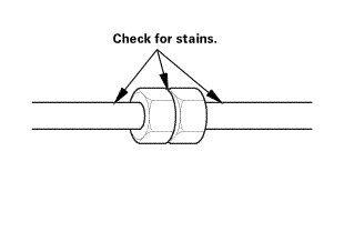 3. Inspect the A/C components, the pressure lines, and the hoses for stains that may indicate a refrigerant or an A/C compressor oil leak. If there is any indication of leaks, do the Refrigerant Leak Check to confirm the leak(s).