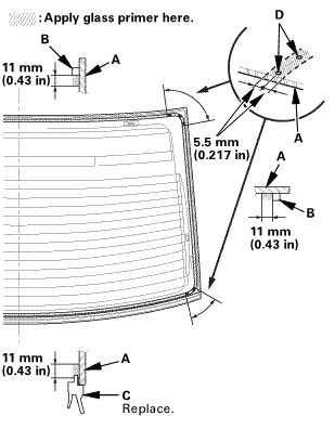 * Do not apply body primer to the rear window, and do not mix up the body and glass primer applicators.