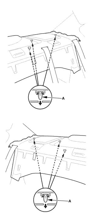 1. Remove the rear of the headliner (A) as needed.