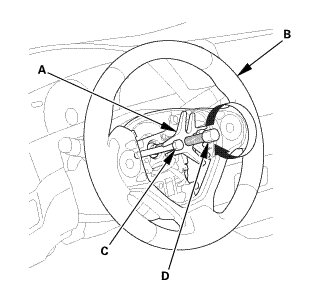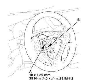 NOTE: Make sure the clearance (B) between the steering wheel and the horn pad is the specified value.