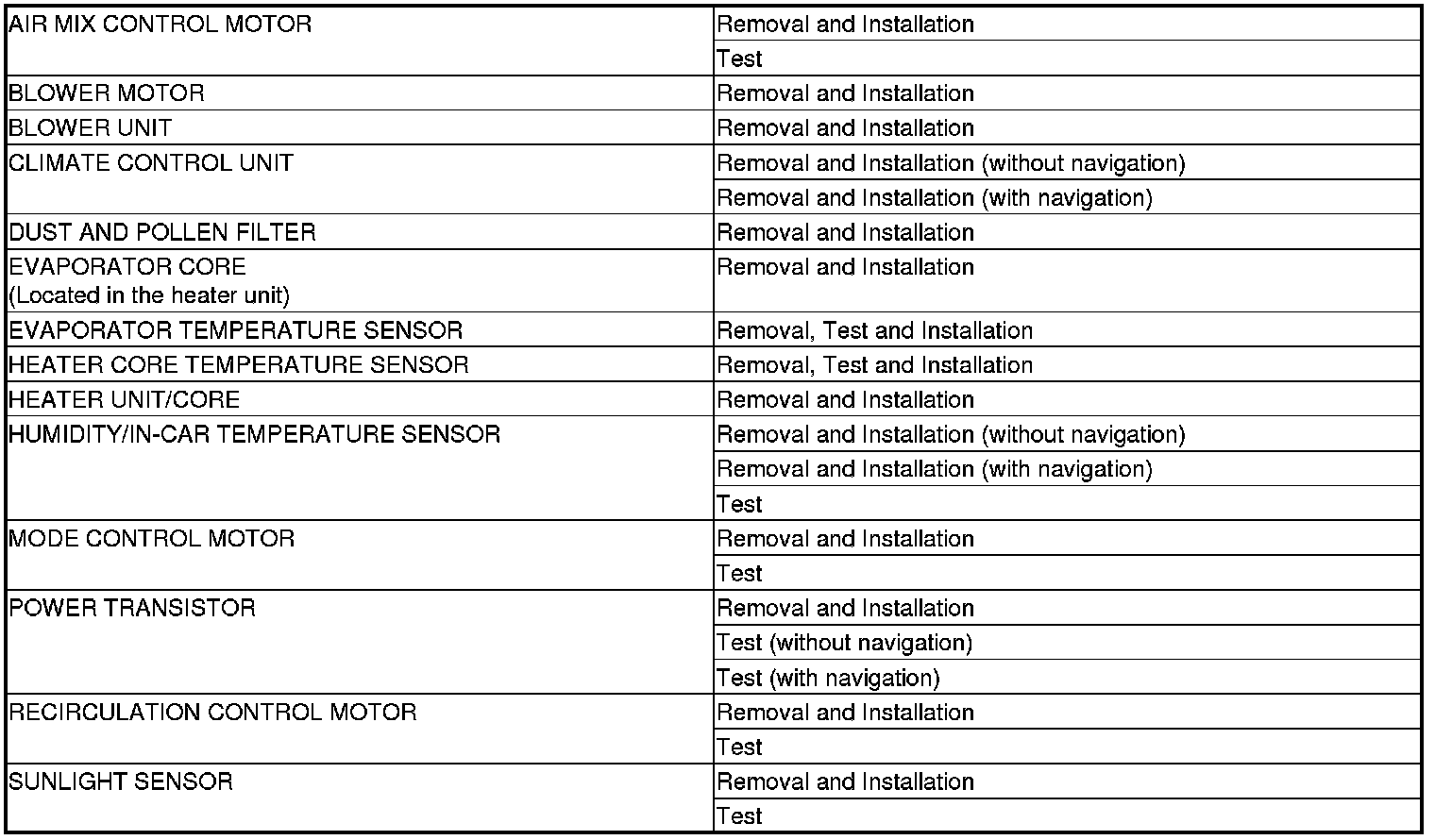 Climate Control System Component Location Index