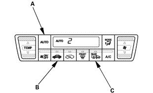 4. Press the REAR WINDOW DEFOGGER/MIRROR DEFOGGER button (C) until the humidity (b) is displayed. For details about the displayed content.