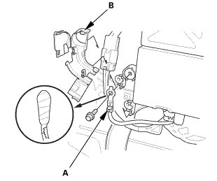 3. Install the 12 volt power cable (B).