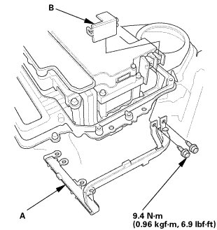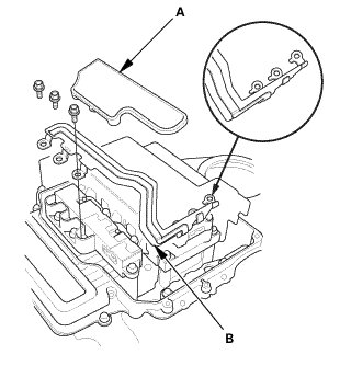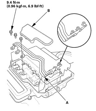 16. Install the cover (A) and the bolts (B).