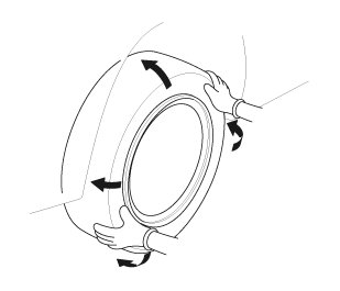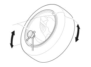 6. If the wheel runout is not within the specification, check the wheel bearing end play, and make sure the mating surfaces between the brake disc or the brake drum and the inside of the wheel are clean.