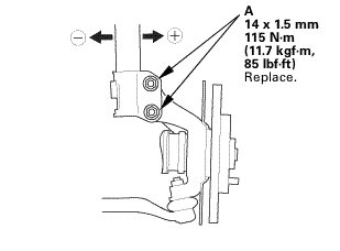 10. Replace the damper pinch bolts with the adjusting bolts (A), and adjust the camber angle.