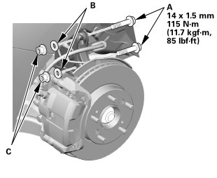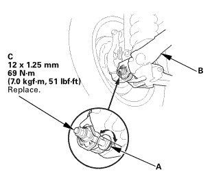 * Install the washers (B) included adjusting bolt set between the front damper and flange nut (C).