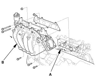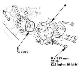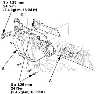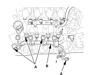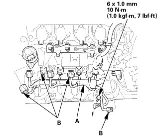 NOTE: When installing the knock sensor, make sure the direction of the sensor connector (B) is as shown.