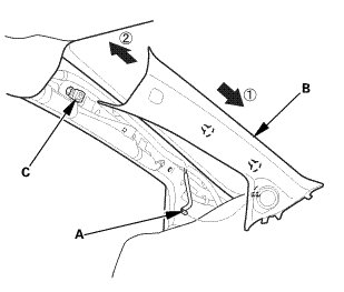 1. Pull out the A-pillar trim (A) to release the clips.