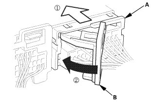 To reconnect the connector (A), push in on the connector. As the connector is pressed in, the lever (B) moves to the locked position.