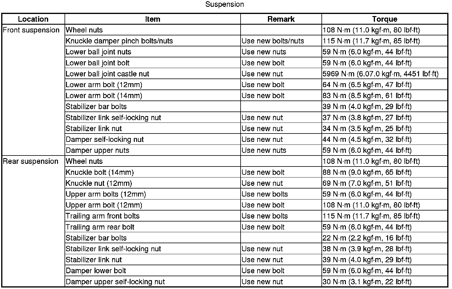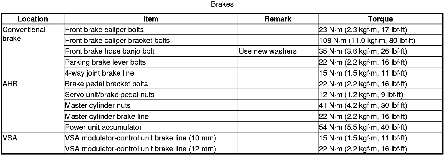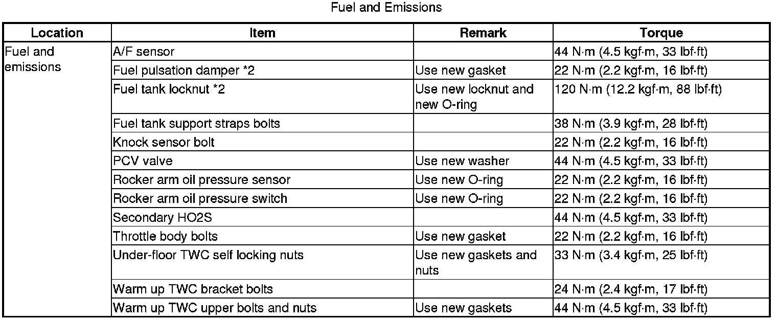 Torque Specifications