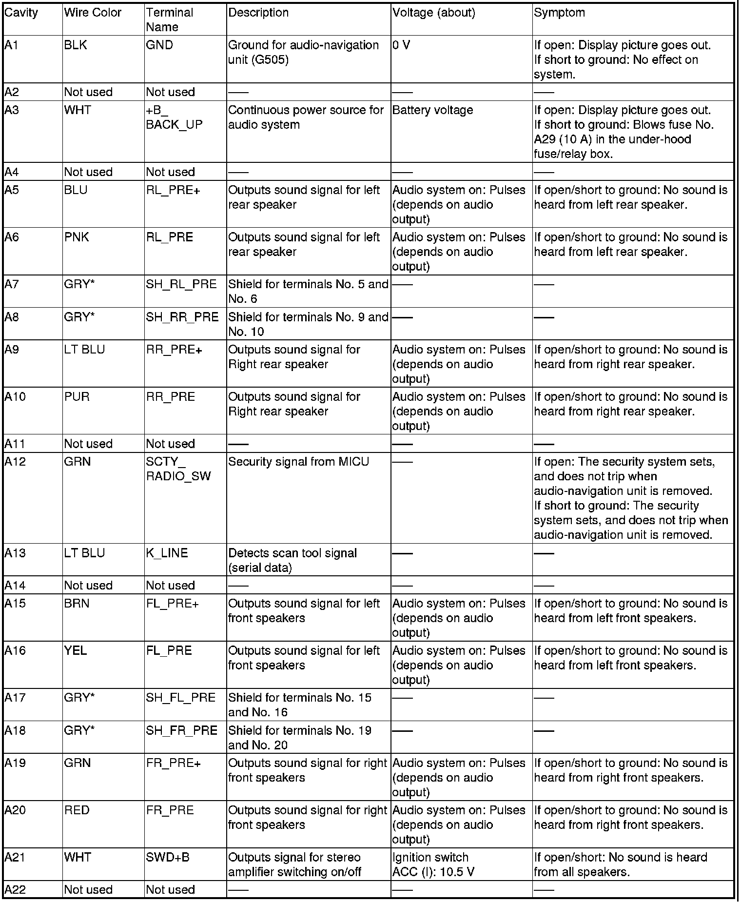 AUDIO-NAVIGATION UNIT CONNECTOR A (24P) (without premium audio)