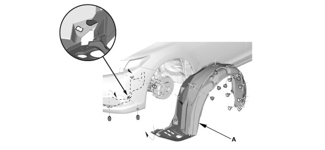 1. Install the front inner fender (A).
