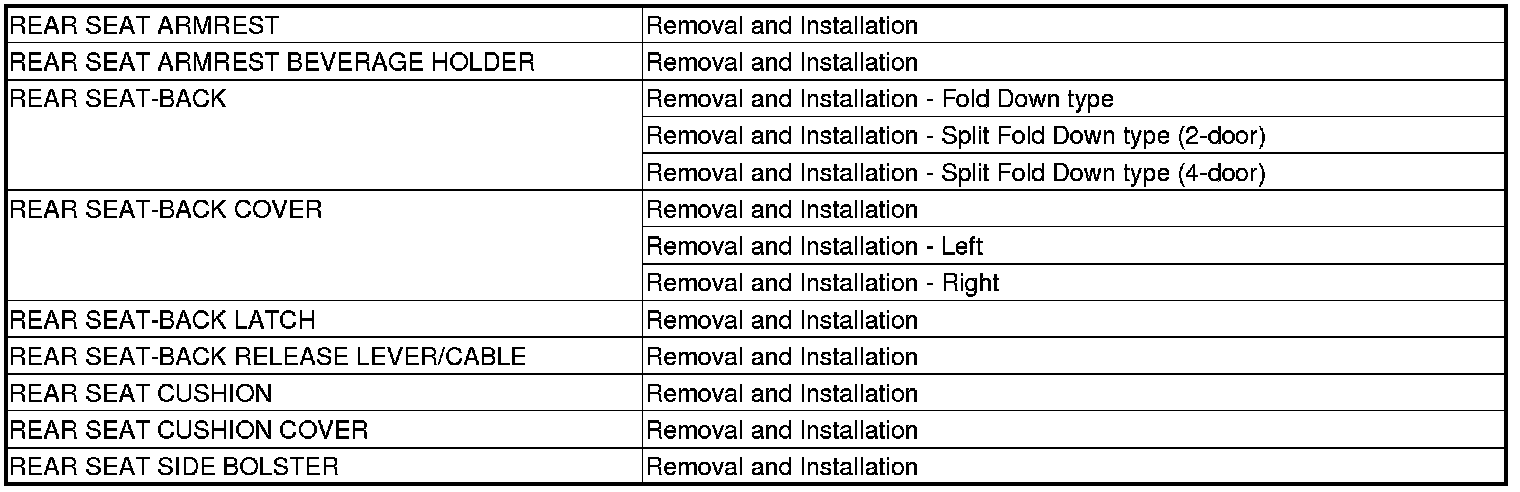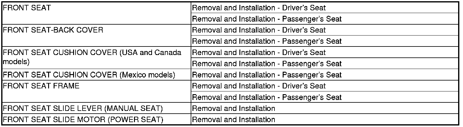 Seats Component Location Index