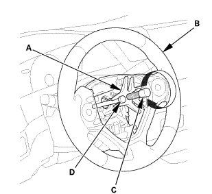 5. Install the steering wheel (C) on to the steering column shaft.