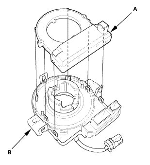 1. Install the steering angle sensor (A) to the cable reel (B).