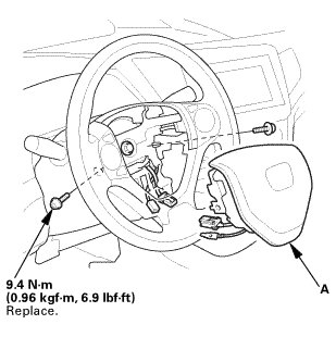 6. Install the steering wheel bolt (A), and tighten it to the specified torque.