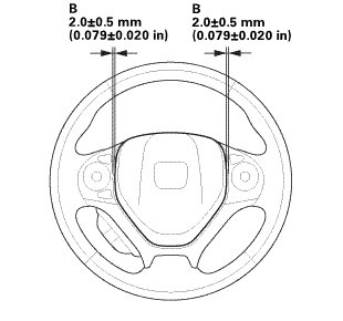 NOTE: Make sure the clearance (B) between the steering wheel and horn pad is the specified value.